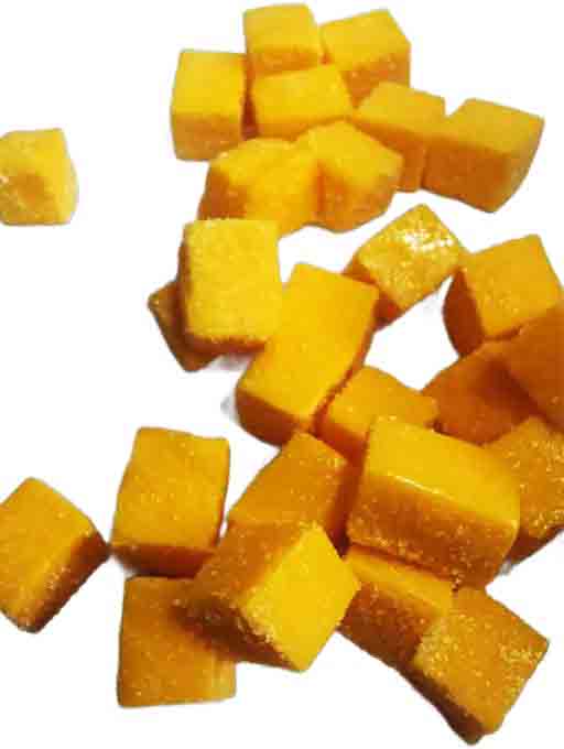 | Fruit puree pieces available in cubes, strings, sticks, leather and macaroni shapes. |